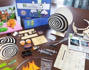 The box includes various DIY projects, experiments, and puzzles that encourage active participation and practical application of STEM concepts